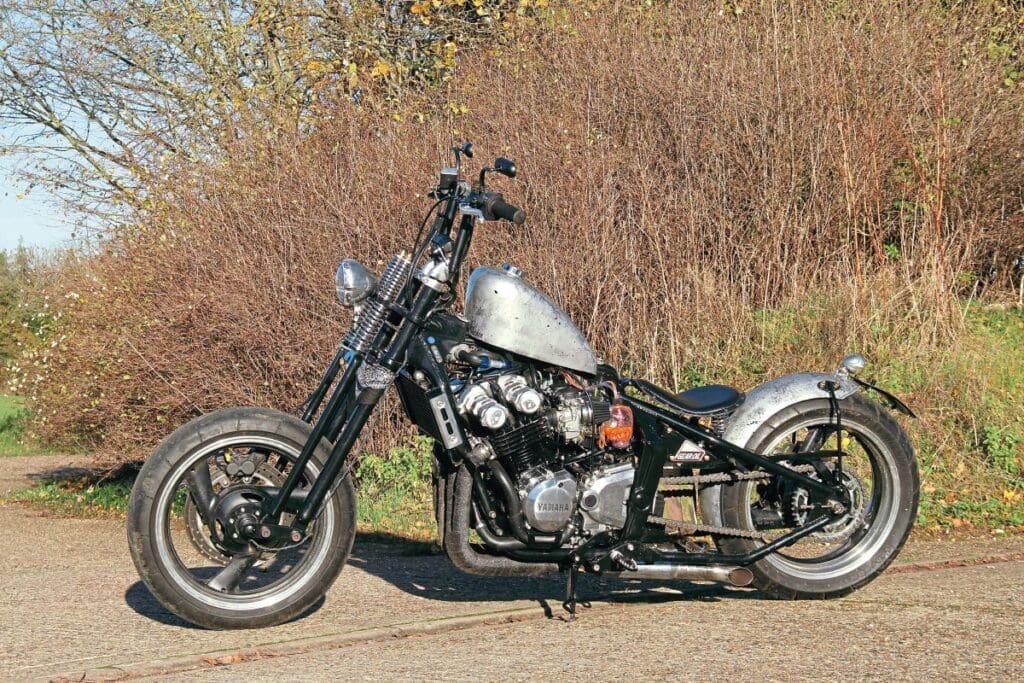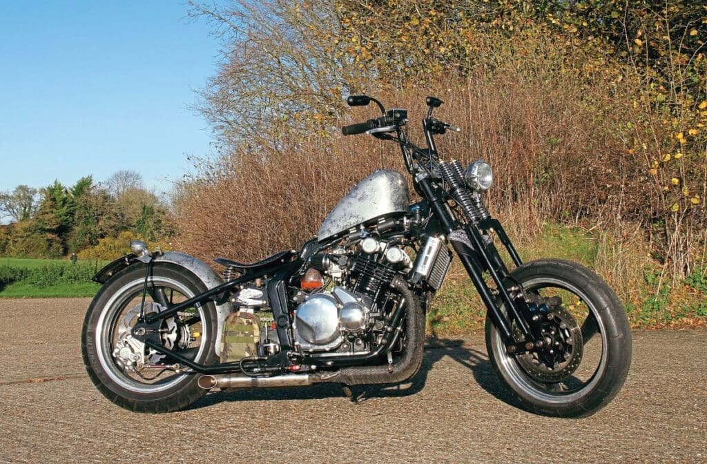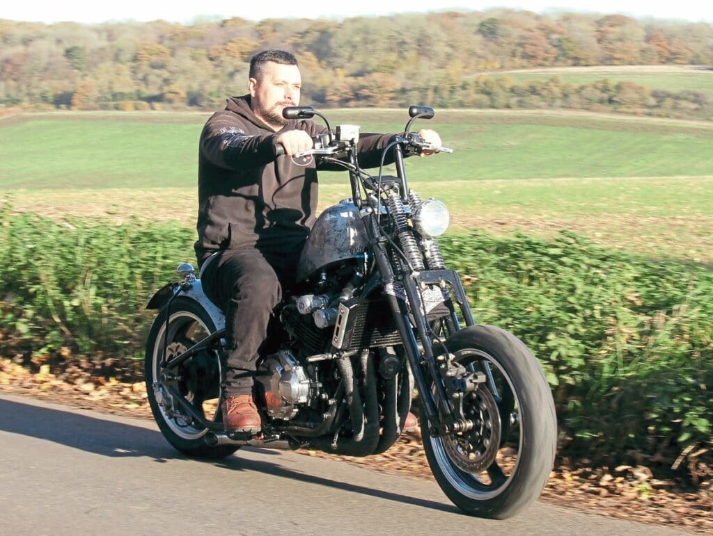 He was inspired to dip a toe in the custom world after he started going round to his good friend Pete Margesson’s to watch him build a chopper from just a frame and wheels. He kept going round there every weekend and seeing the build progress, and it made him want to build his own chopper. Pete told him “You can do it, Ant, you can build a bike out of anything – you just need an engine, frame, and wheels etc.” At the time he (Ant) had one of Yamaha’s Fazer 600s (one of the best mid-range Japanese bikes of all time) so, taking Pete’s words to heart, he made himself a frame jig, using info’ from Pete and off the ‘Net too, put the Fazer frame in it, and cut it. He then stepped back, looked at the frame in the jig, and thought “Shit! What’ve I done?!? Well, that’s it – I’m doing it now or I haven’t got a bike.” It ended up taking him three months to build, and he enjoyed every minute of it – the good, the bad, and the confusing times. He was hooked – he wanted to build more, both bobbers and choppers, so he started building again and, before he knew it, he had six builds under his belt and was well on the way to the seventh.