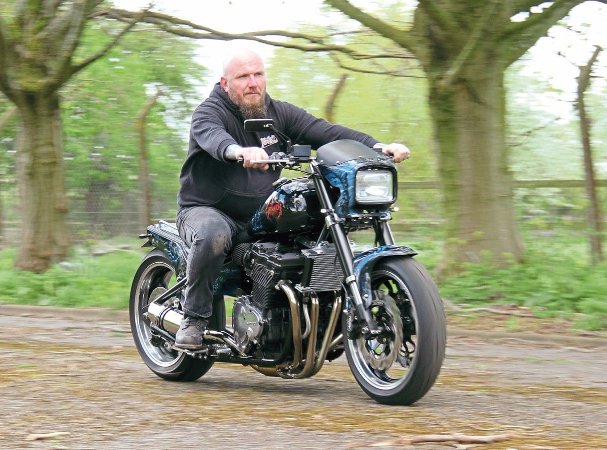 Paul Jones, the owner and builder of this ‘ere Bandit-engined hardtail streetfighter, is well aware of the latest fashions in custom bike building, of bikes that look like refugees from the late ‘50s to the late ‘70s, of dark blue jeans wi’ turn-ups, of the resurgence of rock n’ roll at bike events, an’ all that, but as someone who harkens back to the ‘90s, no the ‘70s, doesn’t really see that any of it’s relevant to him.