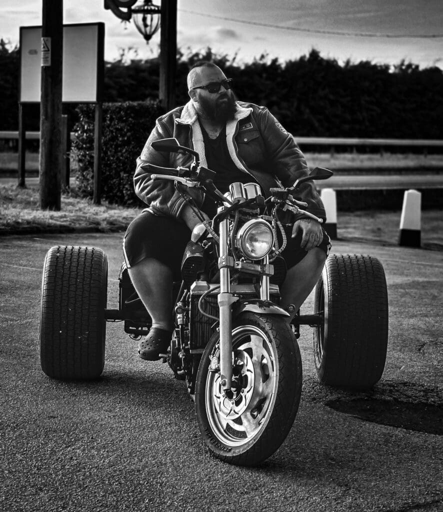 I’m known as hillbilly Rich, I’m 37 and live in Staffordshire. I’m often called Eddie Hall as I resemble him, so I suit the trike well.